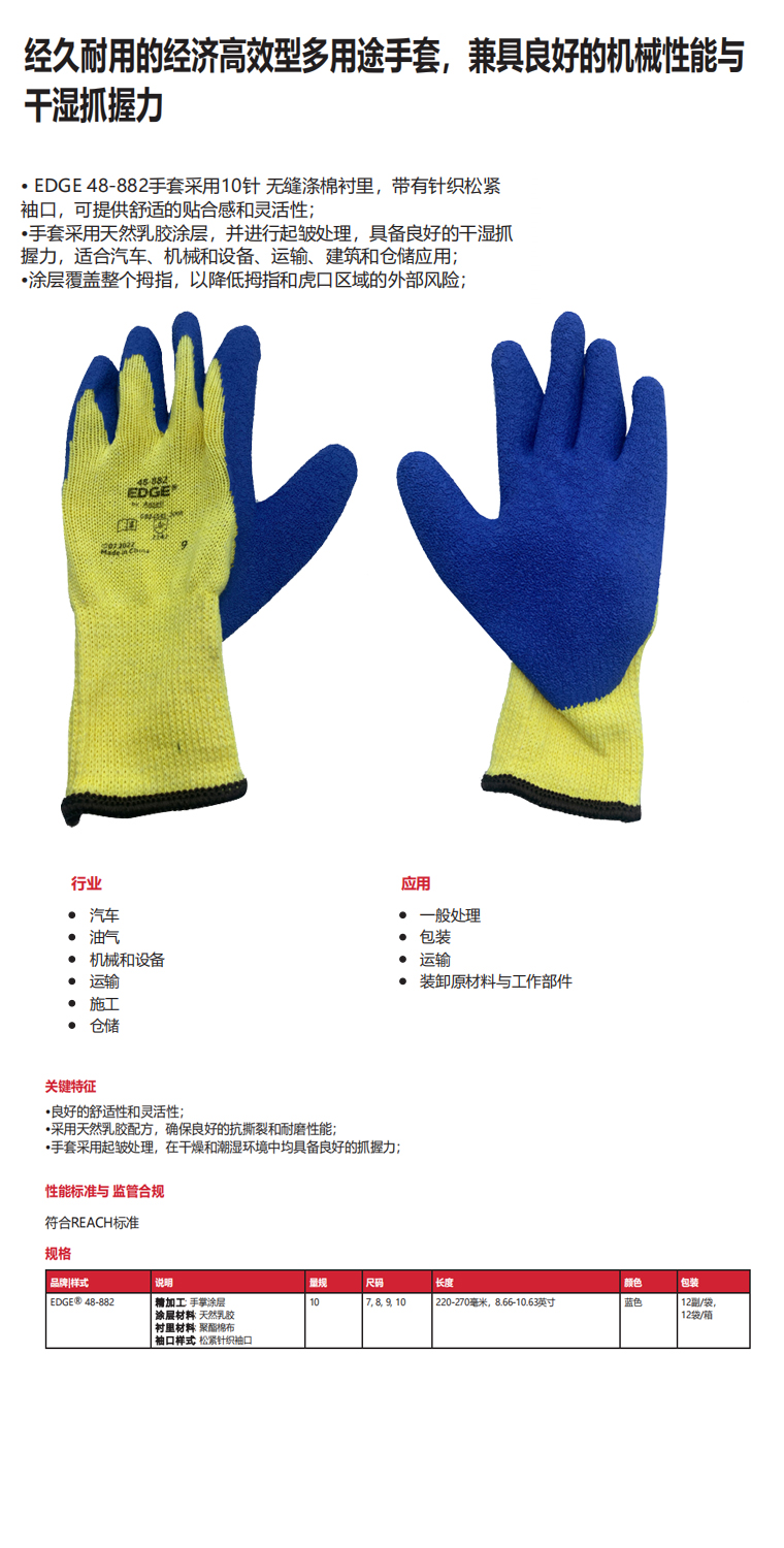 ANSELL48-882天然涂层乳胶手套 12副/打