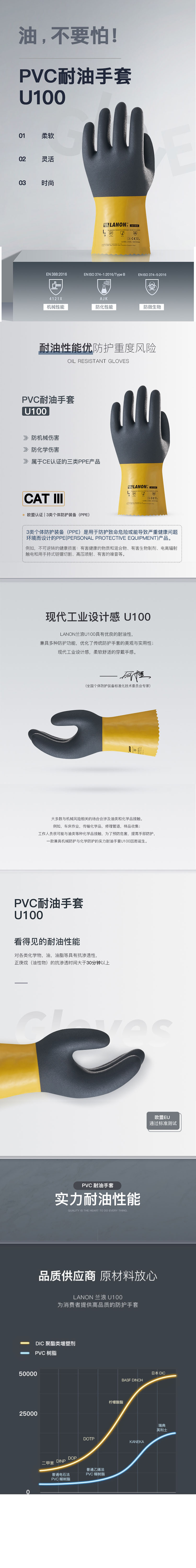 兰浪(LANON)U100 PVC耐油手套无缝内衬浸塑耐酸碱防腐蚀防油防滑工业劳保耐磨防护